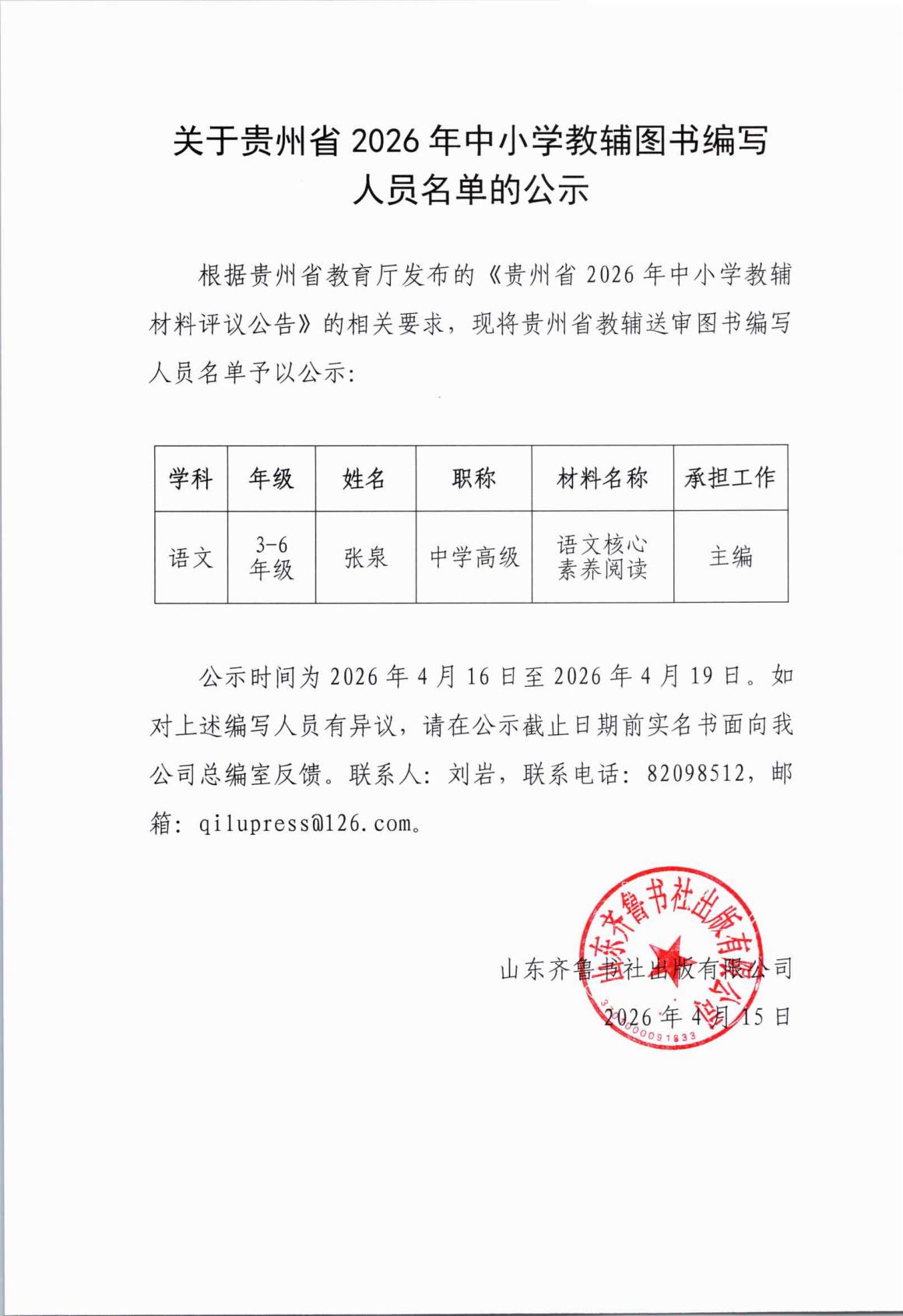 关于贵州省2026年中小学教辅图书编写人员名单的公示